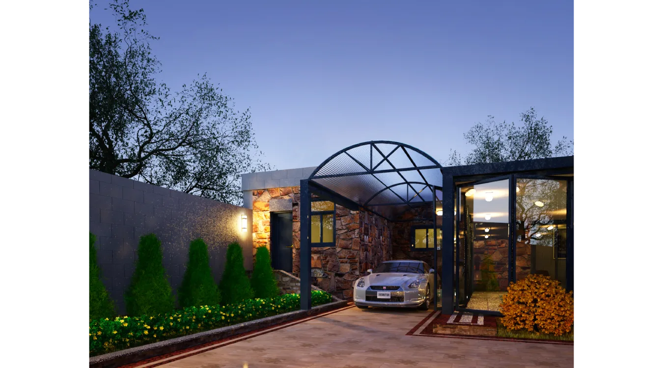 Geniş həyətyanı sahə və avtomobil üçün örtülü dayanacaq (carport) nəzərdə tutulmuş bu sakit və az sıxlıqlı mühitdəki yaşayış evi, layihənin funksional planı ilə birləşərək istifadəçilərə həm rahat, həm də təhlükəsiz bir məkan təqdim edir. Əlavə komfort üçün həyətində, soyuq mövsümdə də istifadəyə yararlı, üstü qapalı hovuz layihələndirilmişdir.