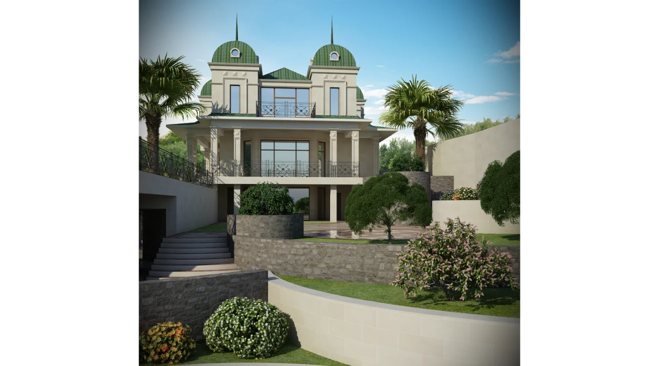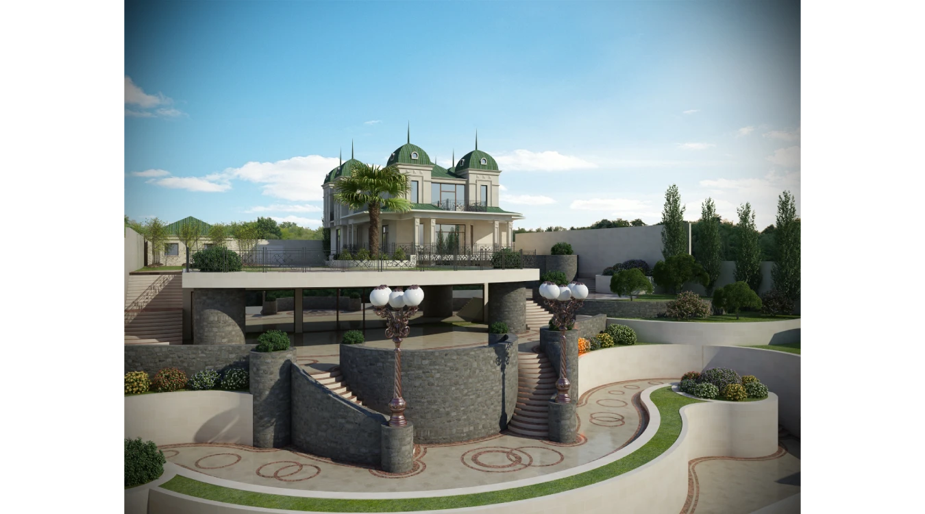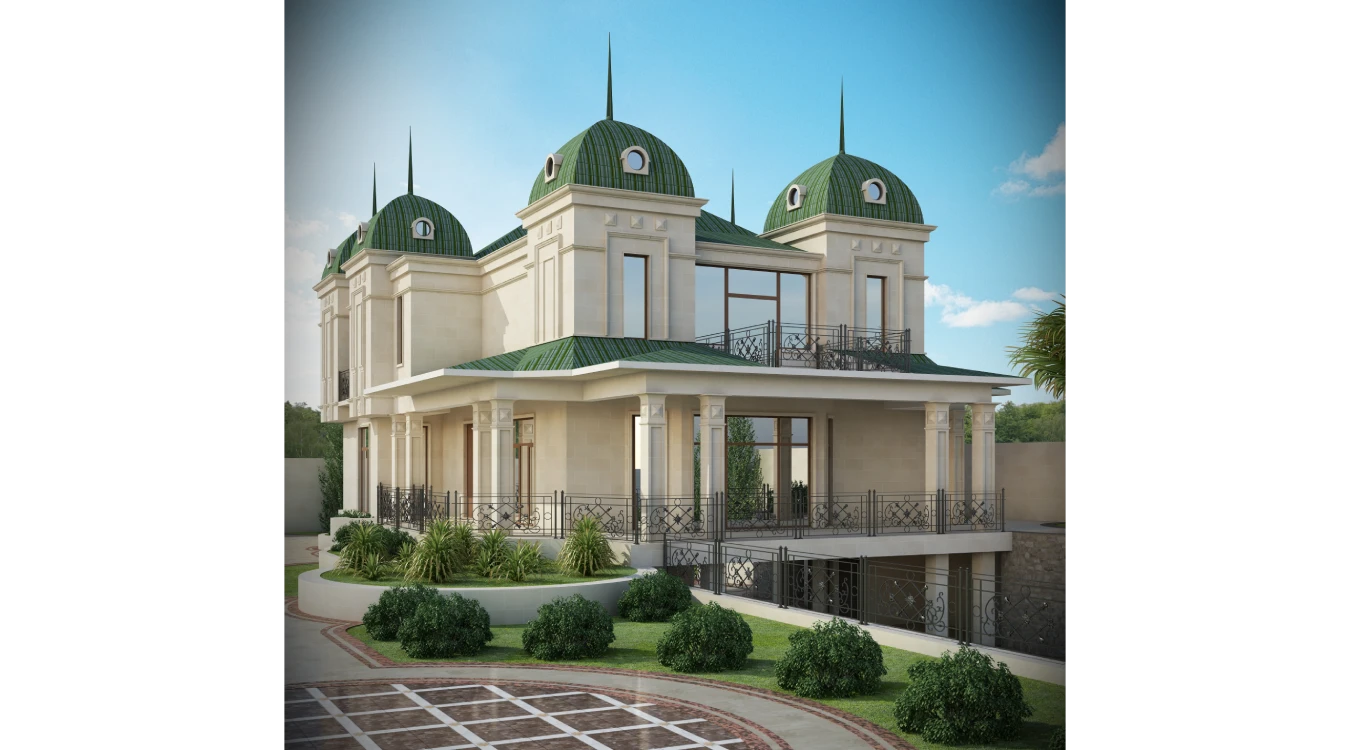 Bu fərdi yaşayış evi, klassik memarlıq elementləri (günbəzlər, sütunlar və şpirlər) ilə müasir lüks tələblərin mükəmməl harmoniyasını nümayiş etdirir. Layihə, nəinki ailə rahatlığını və funksionallığı təmin edir, həm də sahibinin yüksək zövqünü və statusunu əks etdirən əsl sənət əsəridir.